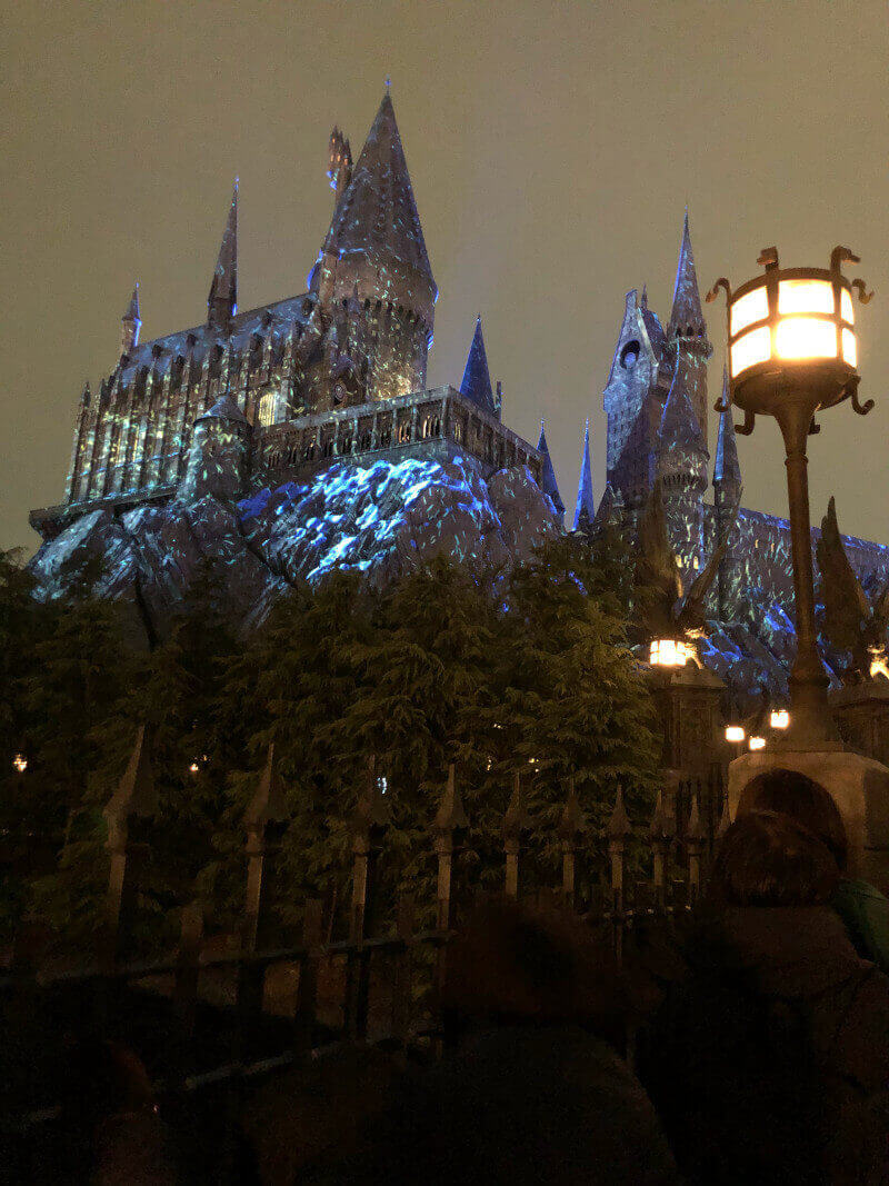 写真撮影ポイント。 ハリー・ポッターエリアに何度か足を運んだので昼・夜と家族写真を撮影しました。