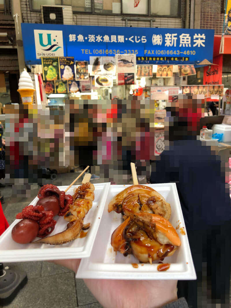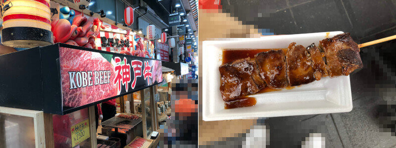 牛串食べて一気に満腹になったので黒門市場での食べ歩きはこれで終了しました。