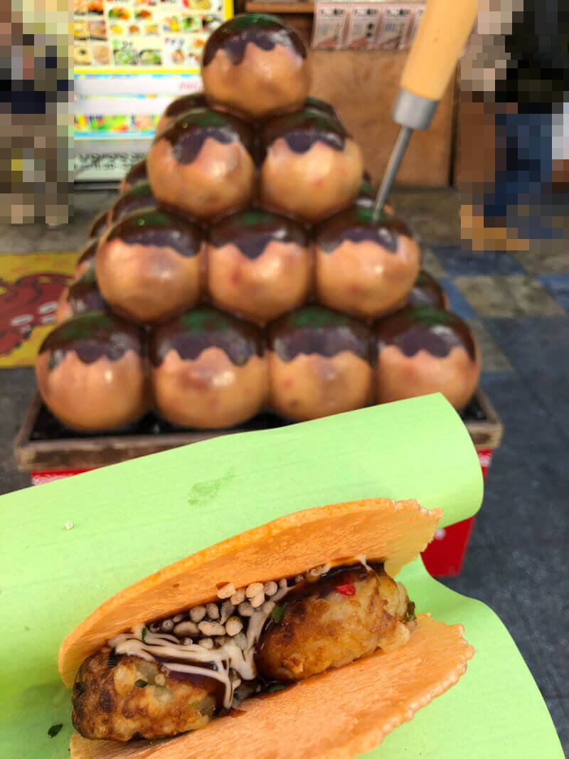 店を出て次の目的地へ行く途中でたこ焼き屋をハシゴしながら向かいました。