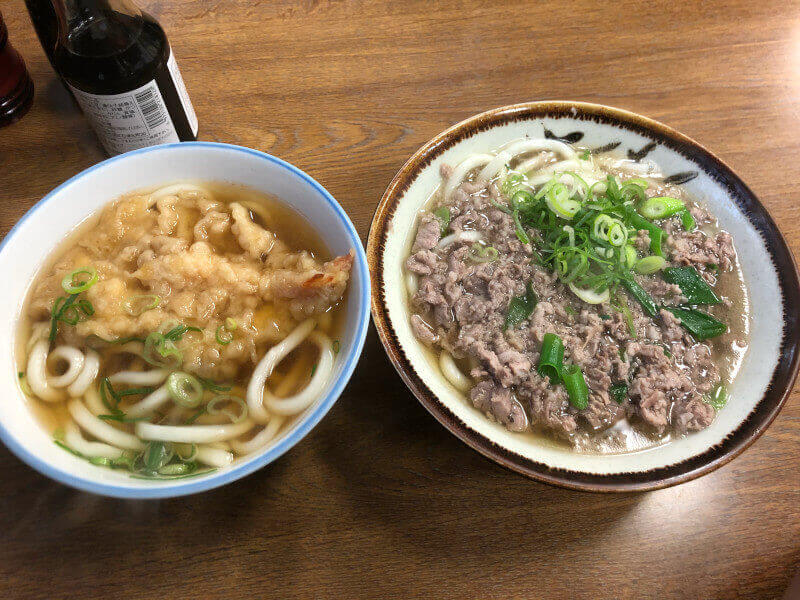 人気の肉うどんと好きな天ぷらうどんを注文して食べました。
