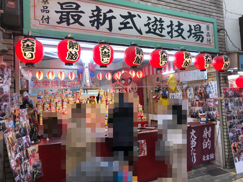 新世界の商店街にある射的「秘宝館」というお店で射的をしました。