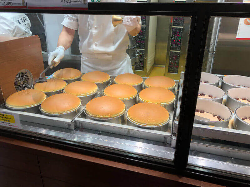 並んで少し経つとチーズケーキが焼けるのに15分かかってしまうと案内されましたが、帰りの新幹線にはギリギリ間に合いそうだったので承認してそのまま並ぶことにしました。