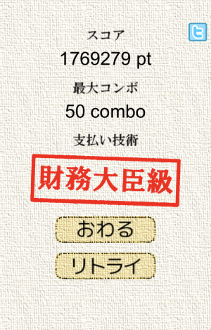 ちなみに私が挑戦したところ、財務大臣級でした。